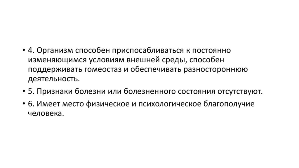 • 3. Условия сохранения здоровья. Признаки здоровья.