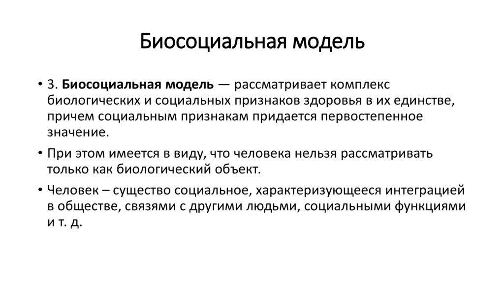 • 6. Концептуальные модели здоровья: биосоциальная модель.