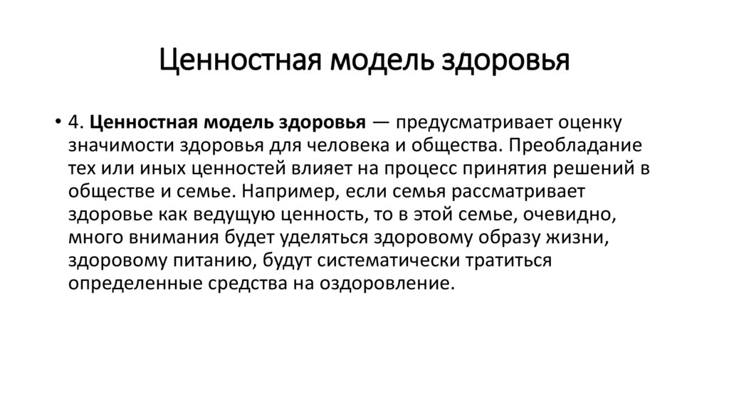 • 7. Концептуальные модели здоровья: ценностная модель здоровья.