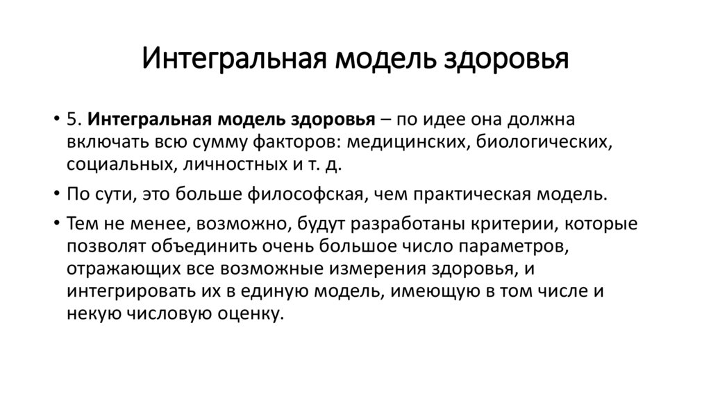 • 8. Концептуальные модели здоровья: интегральная модель здоровья.