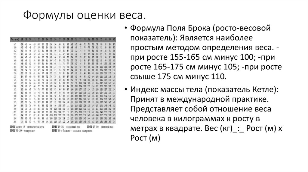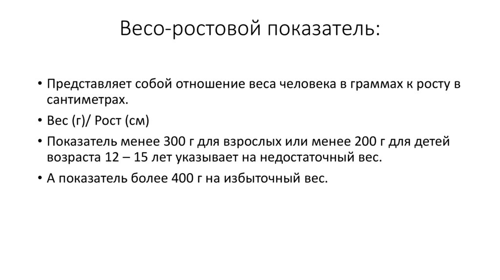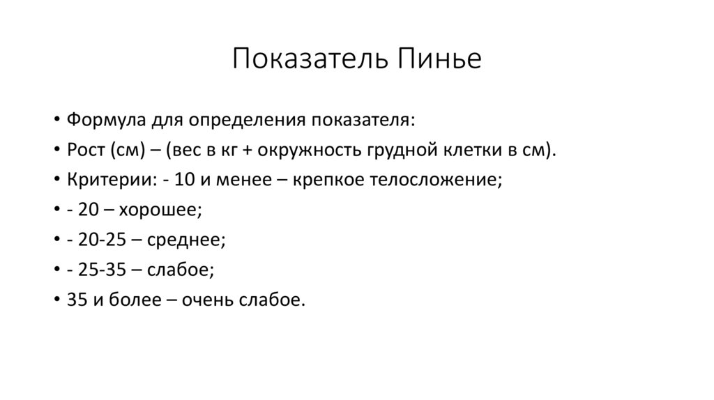 • Рост (см) – (вес в кг + окружность грудной клетки в см).