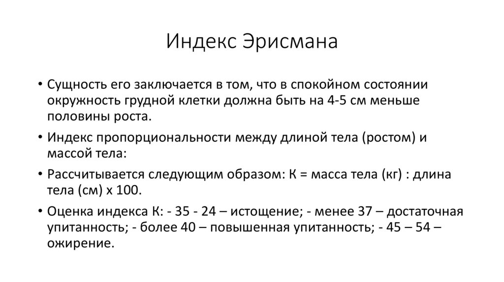 • Рассчитывается следующим образом: К = масса тела (кг) : длина