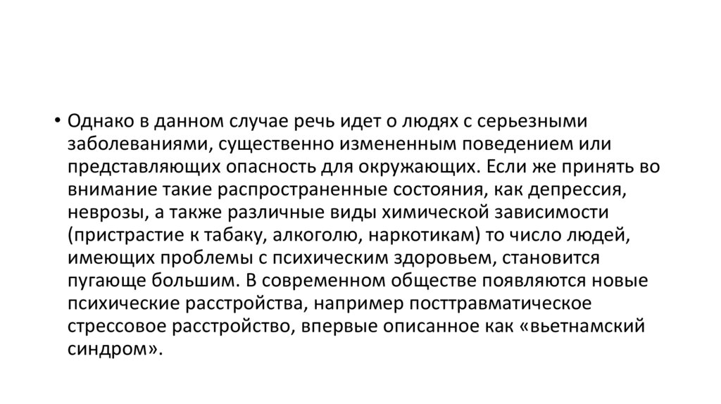 • Однако в данном случае речь идет о людях с серьезнымизаболеваниями, существенно измененным поведением или