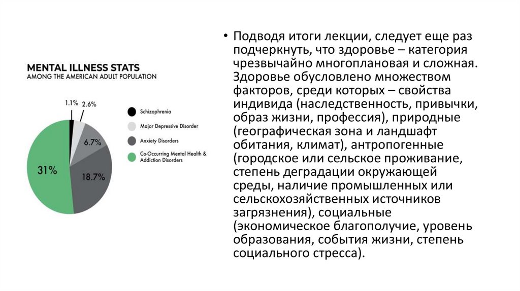 • Подводя итоги лекции, следует еще разподчеркнуть, что здоровье – категория