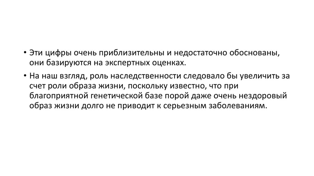 • На наш взгляд, роль наследственности следовало бы увеличить за