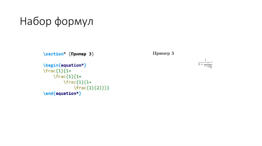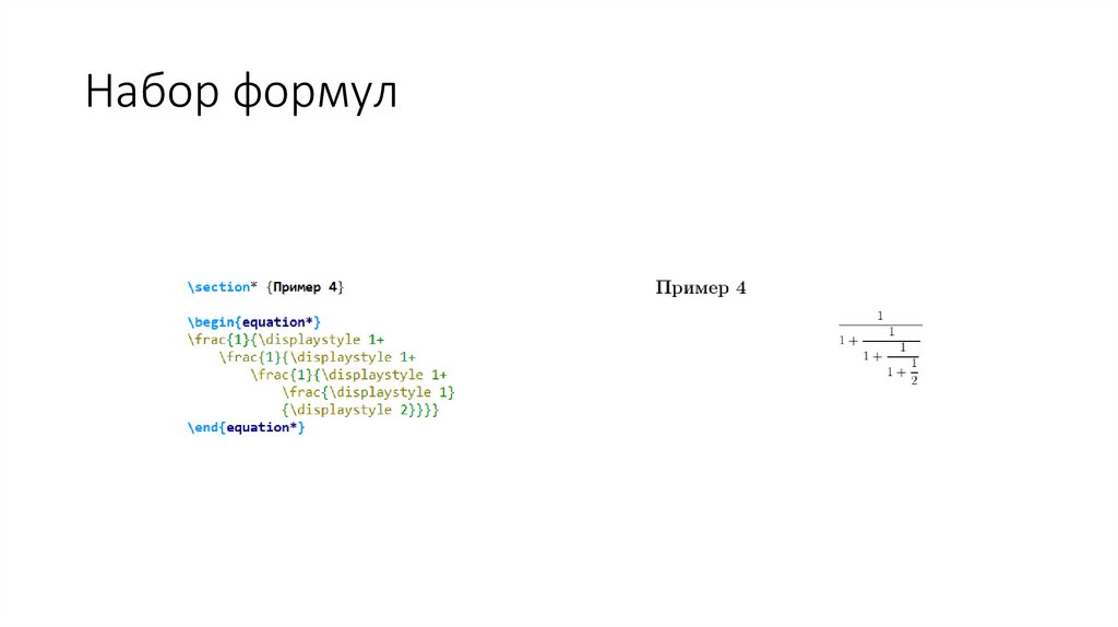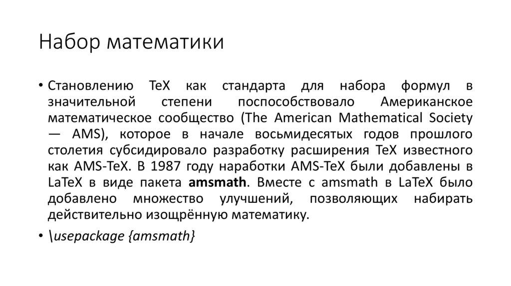 Набор математики• Становлению TeX как стандарта для набора формул в