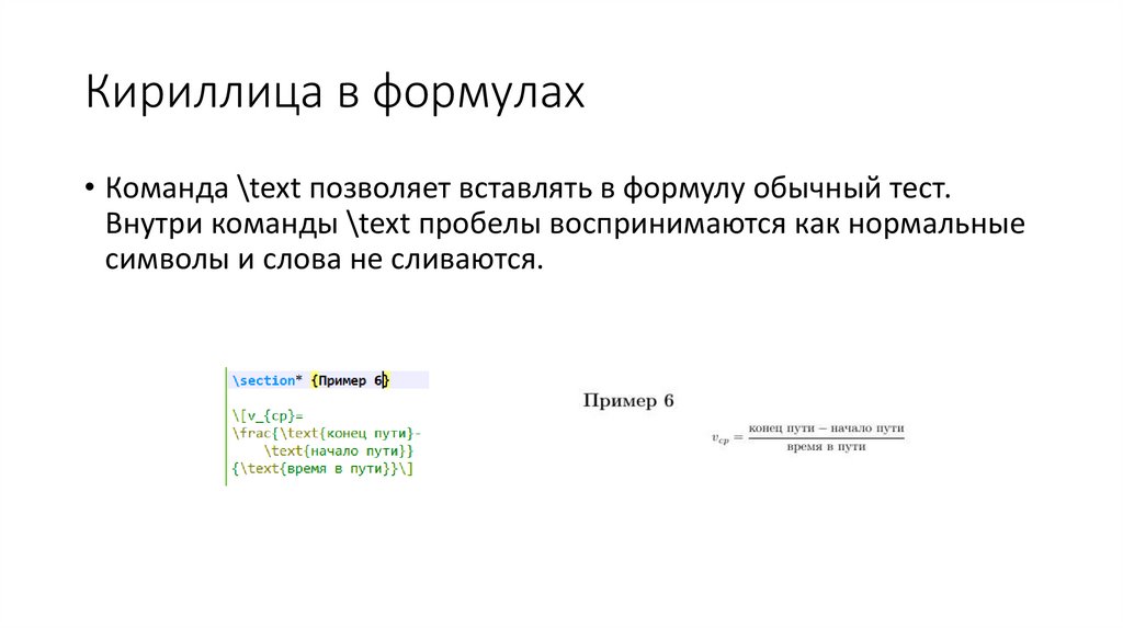 Кириллица в формулах• Команда \text позволяет вставлять в формулу обычный тест.