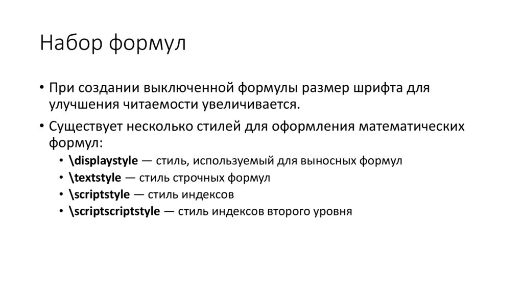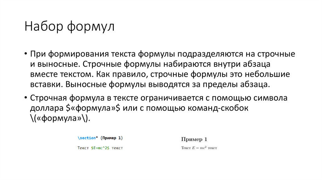 Набор формул• При формирования текста формулы подразделяются на строчные