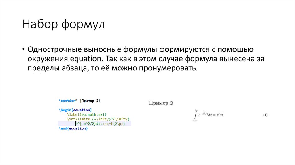 Набор формул• Однострочные выносные формулы формируются с помощью