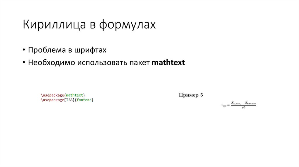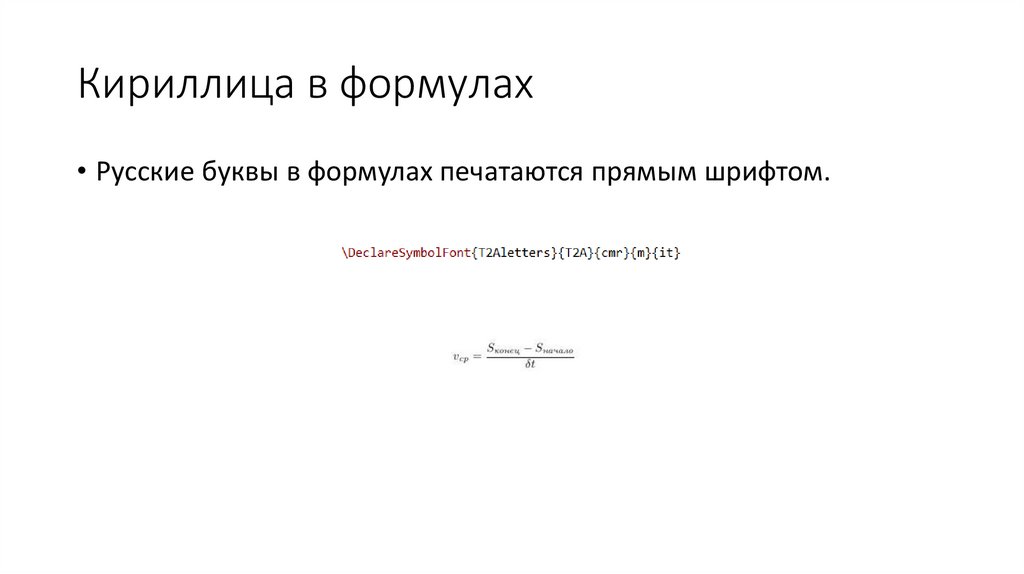 Кириллица в формулах• Русские буквы в формулах печатаются прямым шрифтом.