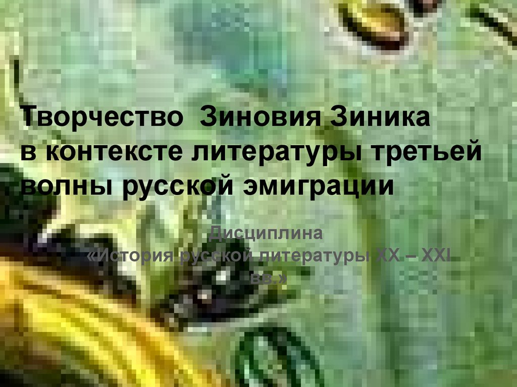 Творчество Зиновия Зиника в контексте литературы третьей волны русской эмиграции