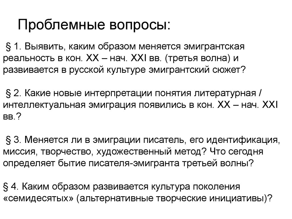 Проблемные вопросы:§ 1. Выявить, каким образом меняется эмигрантская