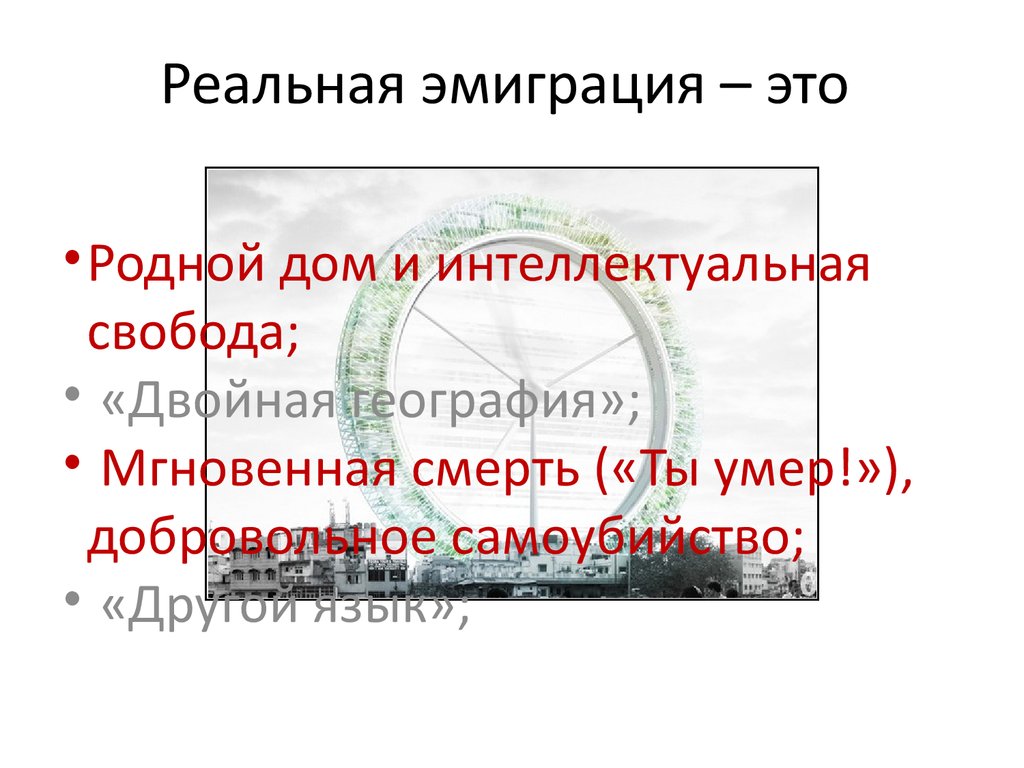 эмиграцию … Это и есть очень любопытный момент переход границы чуждого, когда оно становится своим