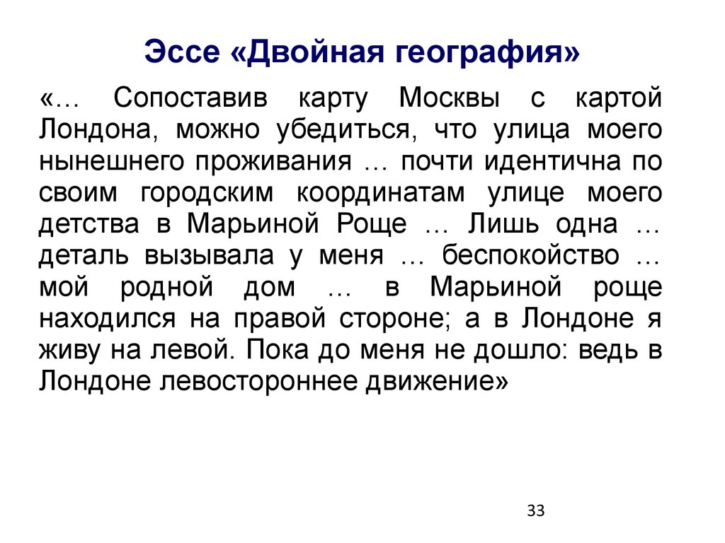 Эссе «Двойная география»«… Сопоставив карту Москвы с картой