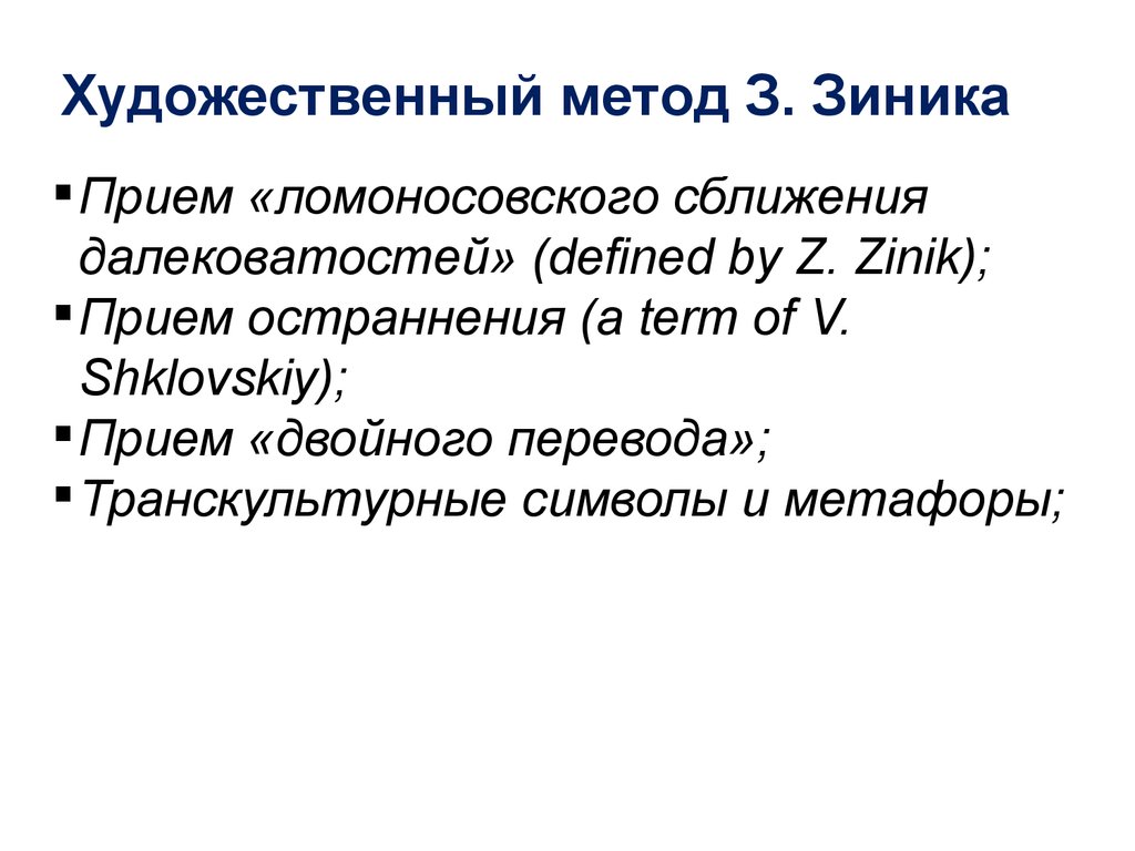 Художественный метод З. ЗиникаПрием «ломоносовского сближения
