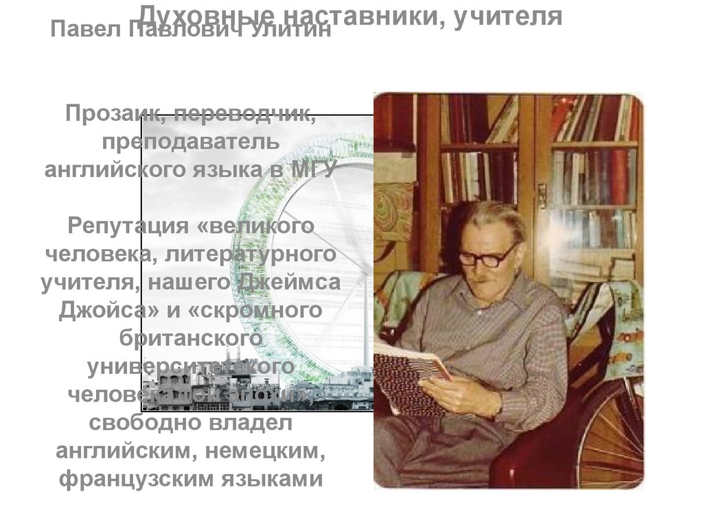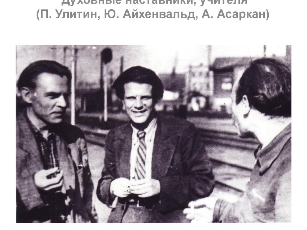 Духовные наставники, учителя(П. Улитин, Ю. Айхенвальд, А. Асаркан)