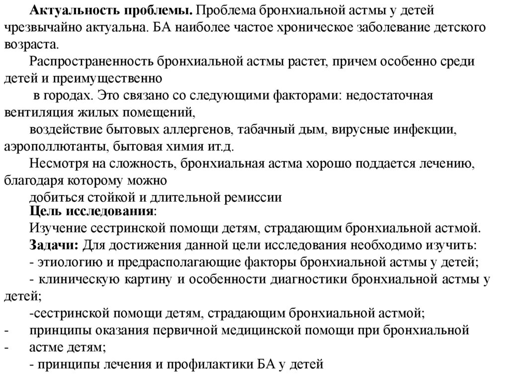 Актуальность проблемы. Проблема бронхиальной астмы у детейчрезвычайно актуальна. БА наиболее частое хроническое заболевание детского