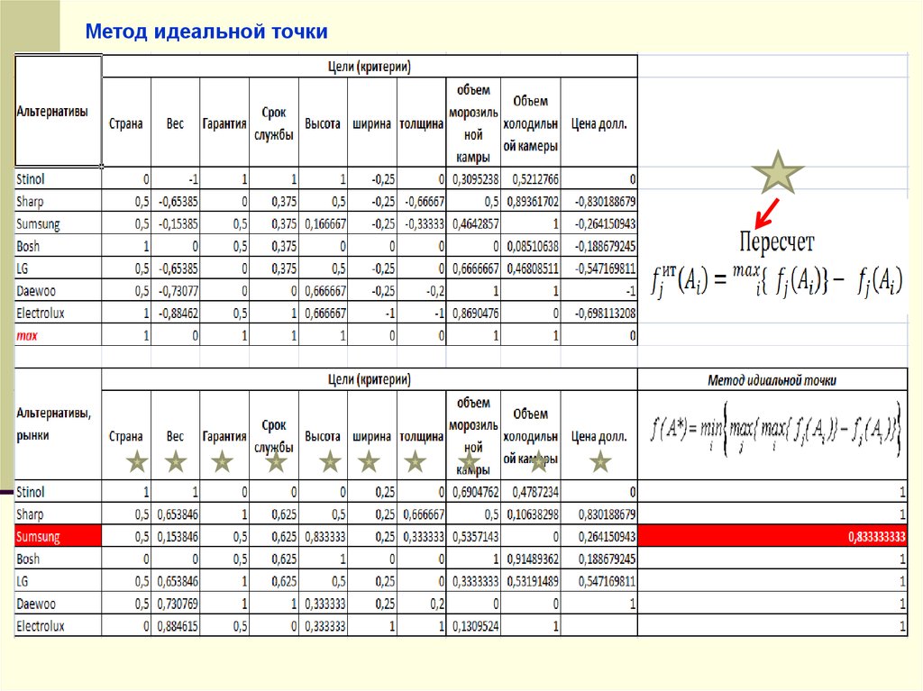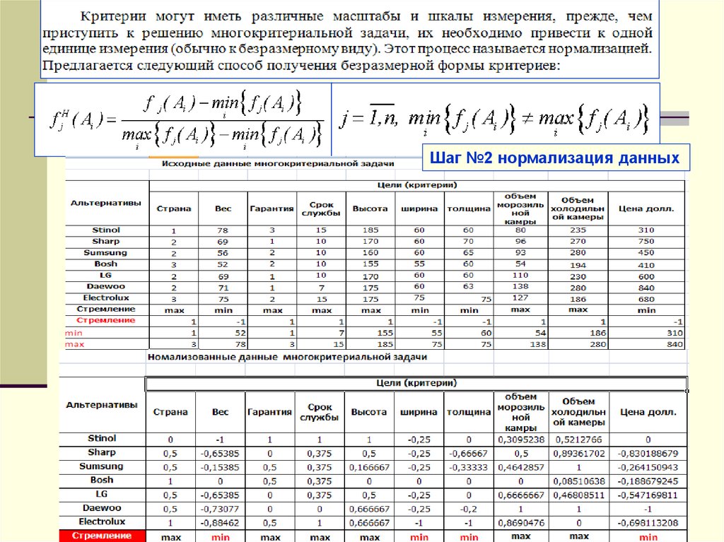 относительно параметров этих свойств. Требуется выбрать проект с наилучшим