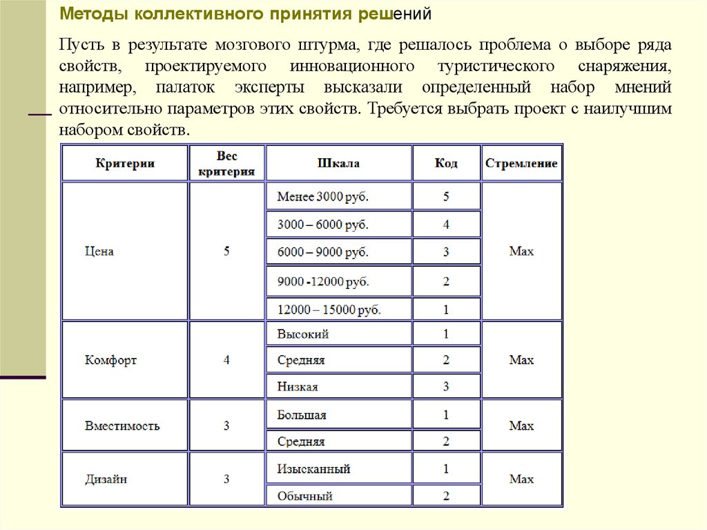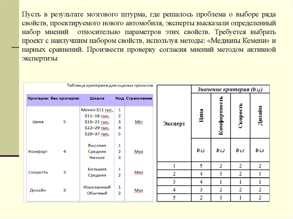 Методы коллективного принятия решенийПусть в результате мозгового штурма, где решалось проблема о выборе ряда