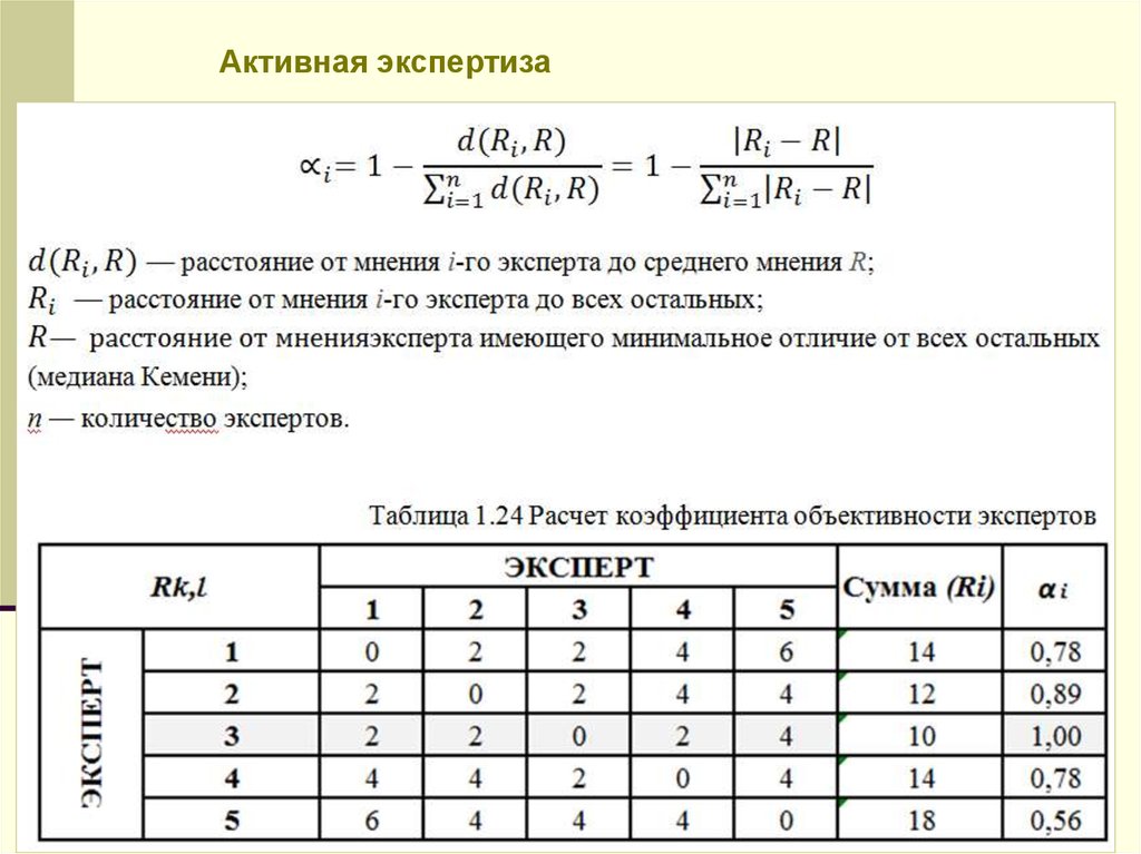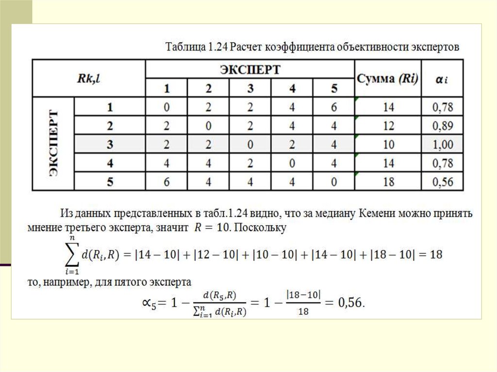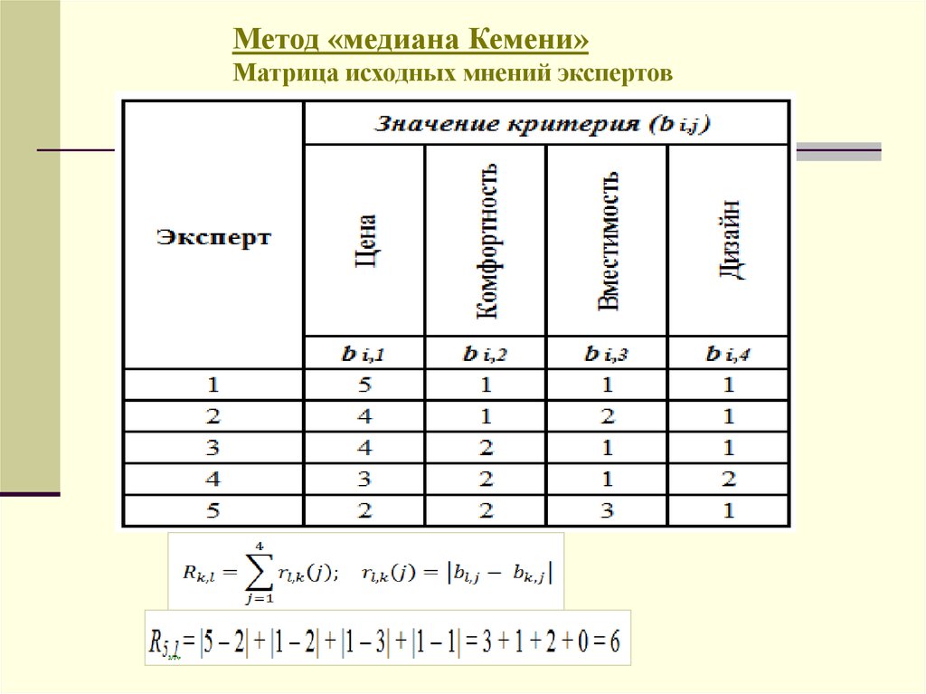 Метод «медиана Кемени»Матрица исходных мнений экспертов