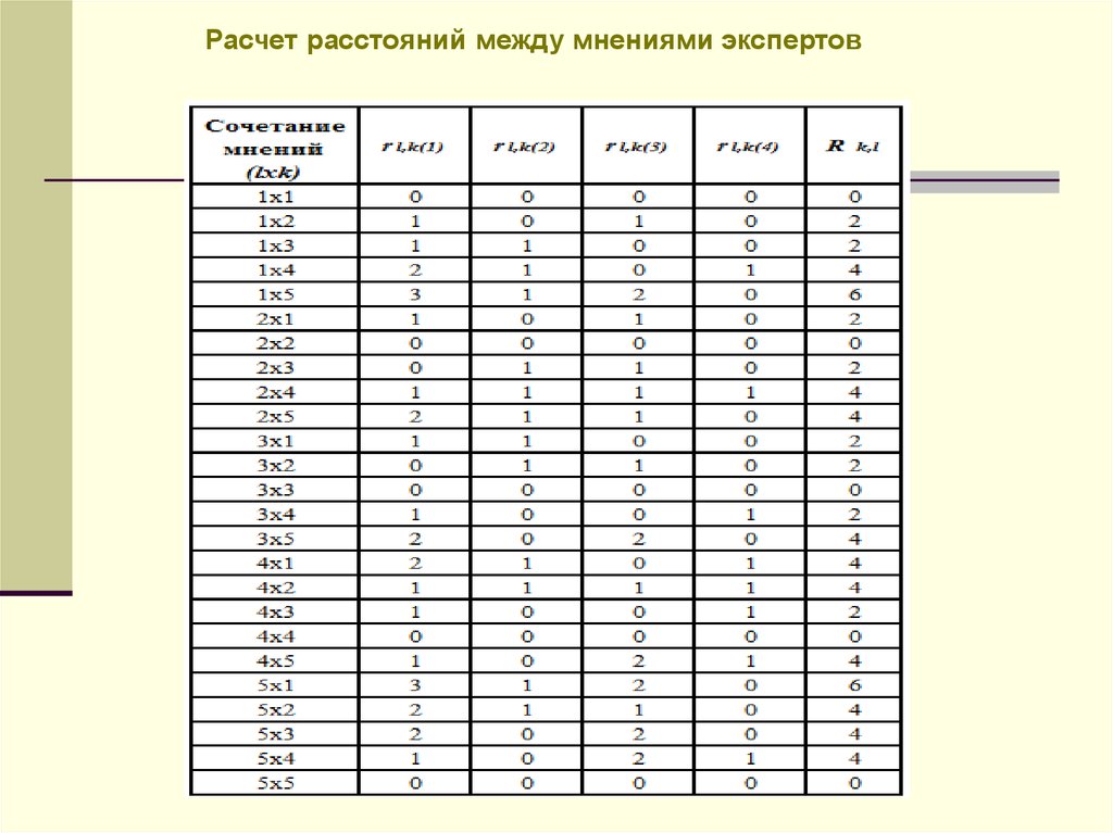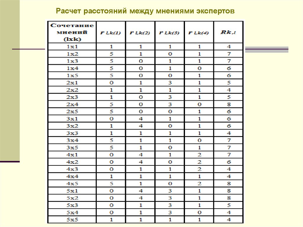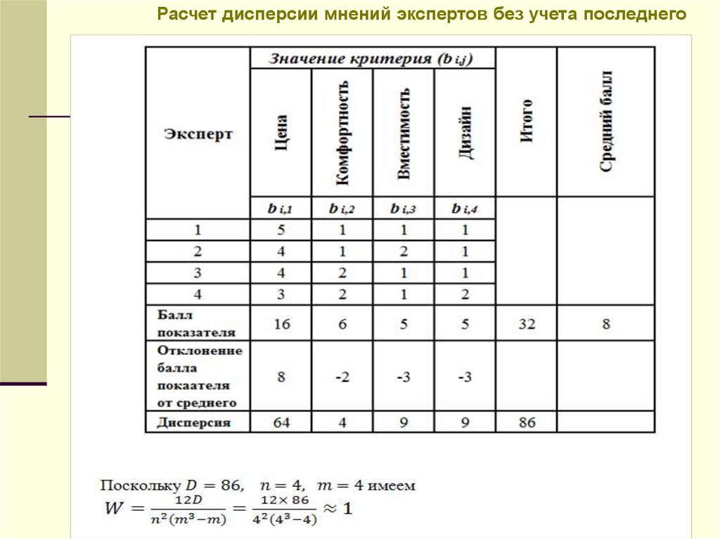 Расчет дисперсии мнений экспертов без учета последнего39.