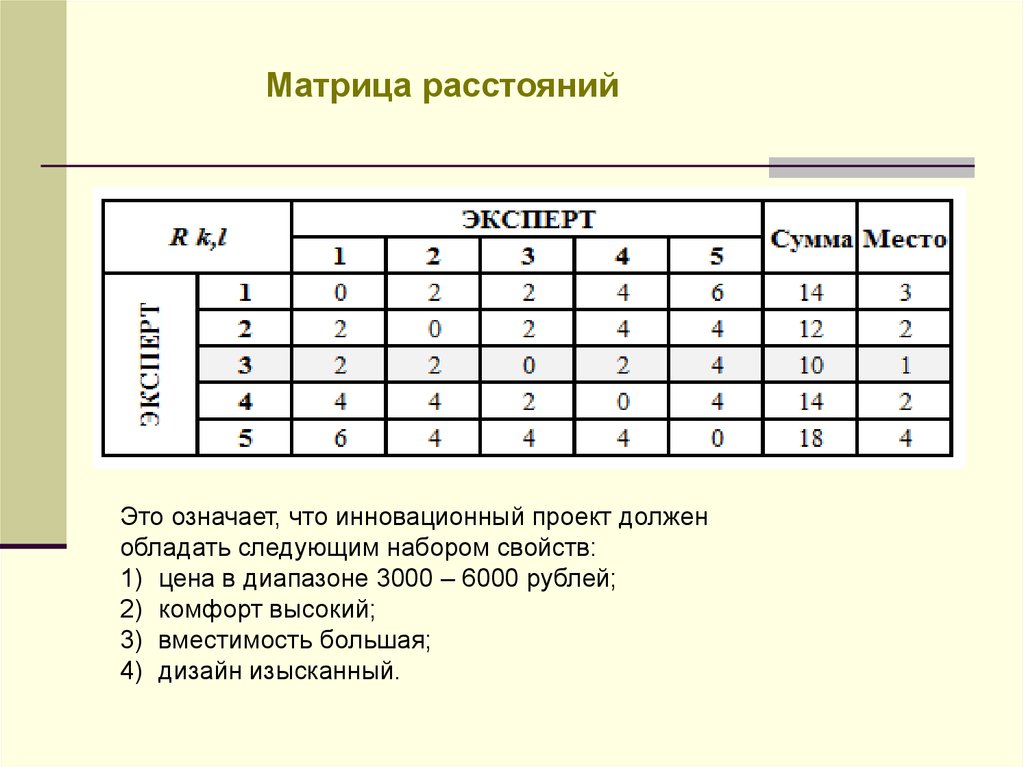 Матрица расстоянийЭто означает, что инновационный проект должен
