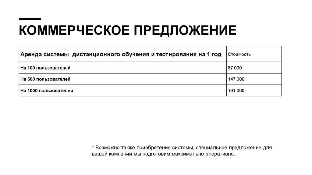 КОММЕРЧЕСКОЕ ПРЕДЛОЖЕНИЕАренда системы дистанционного обучения и тестирования на 1 год