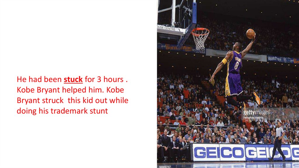 He had been stuck for 3 hours .Kobe Bryant helped him. Kobe