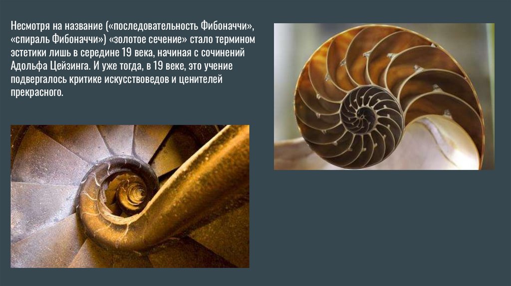 Несмотря на название («последовательность Фибоначчи»,«спираль Фибоначчи») «золотое сечение» стало термином