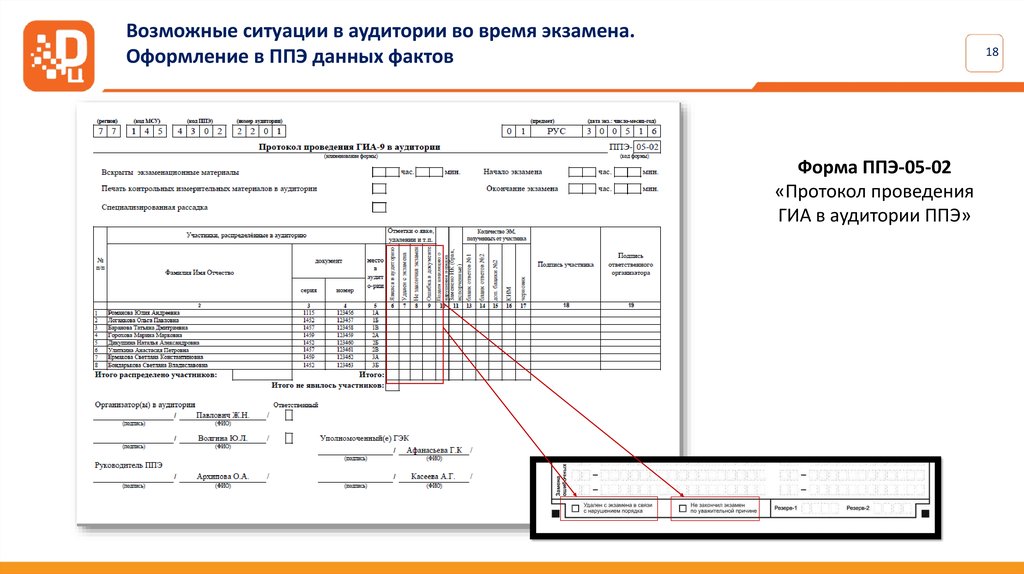 форма ППЭ-05-02 «Протокол проведения ГИА-9 в аудитории»;