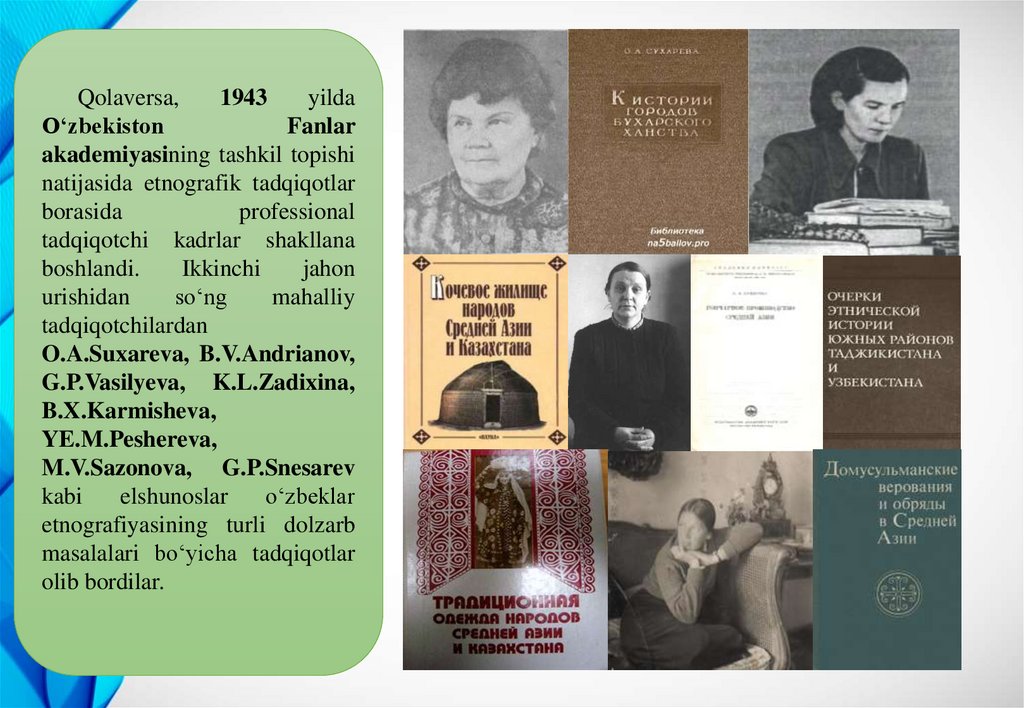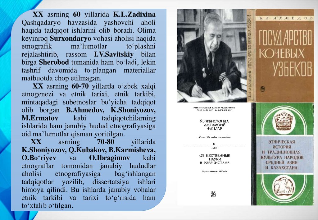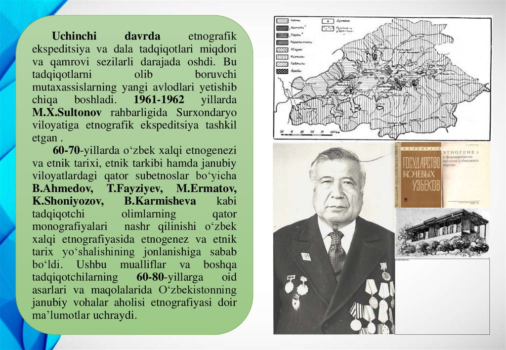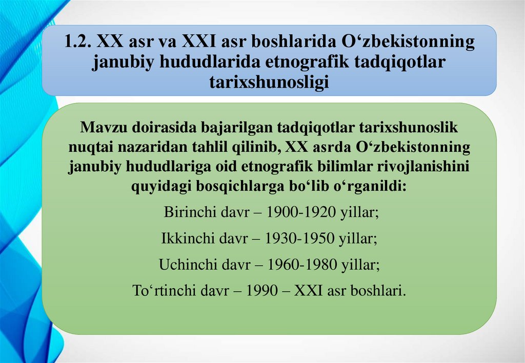 1.2. XX asr va XXI asr boshlarida O‘zbekistonning janubiy hududlarida etnografik tadqiqotlar