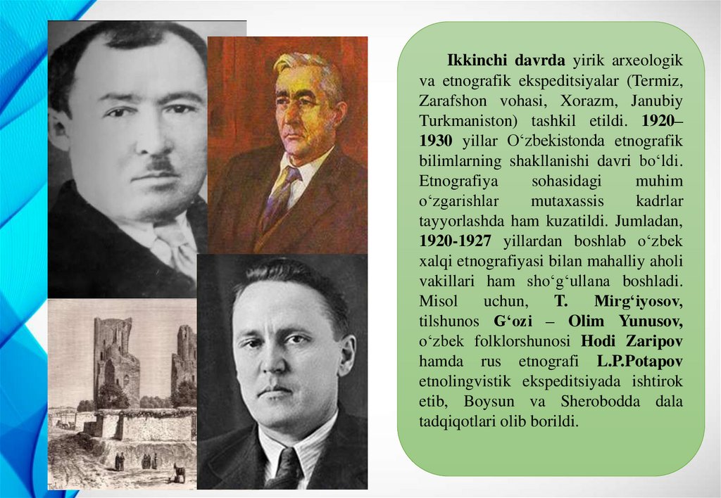 moddiy va ma’naviy madaniyatiga oid yangi etnografik tadqiqotlar va ekspeditsiyalar amalga oshirilishi