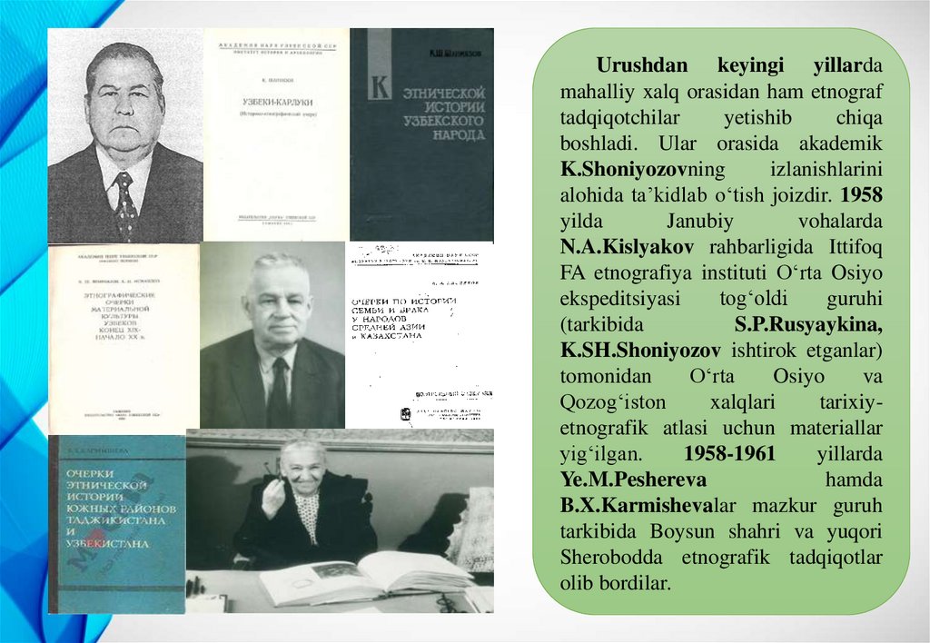 5. Sovet davridagi siyosiy jarayonlarning ta’siri ostida tadqiqotlar notekis amalga oshirildi. Faqatgina