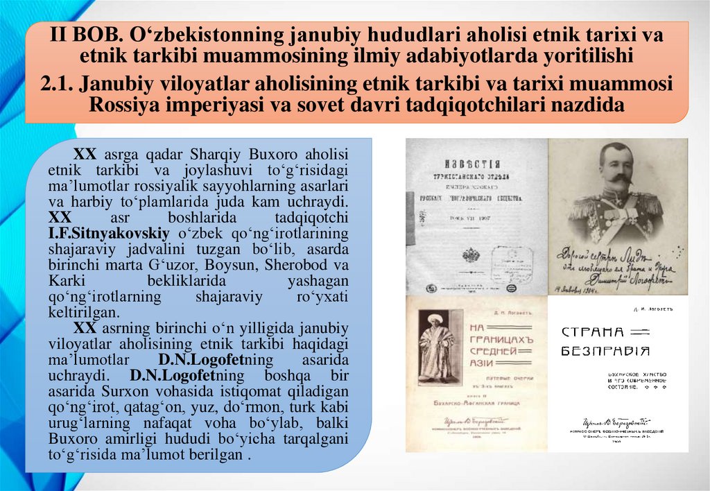 II BOB. O‘zbekistonning janubiy hududlari aholisi etnik tarixi va etnik tarkibi muammosining