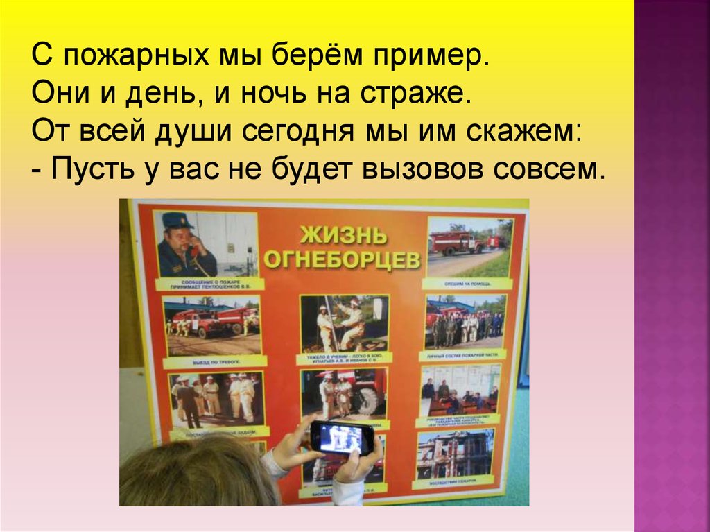 С пожарных мы берём пример.Они и день, и ночь на страже.