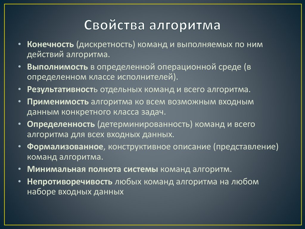 • Конечность (дискретность) команд и выполняемых по нимдействий алгоритма.