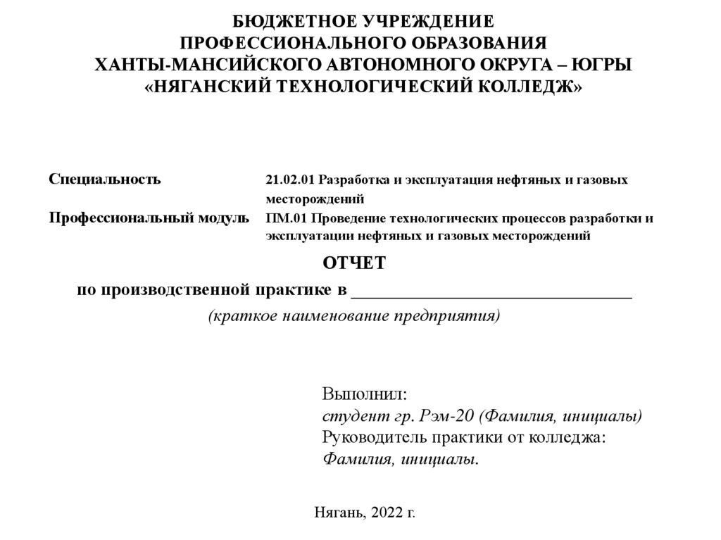 «НЯГАНСКИЙ ТЕХНОЛОГИЧЕСКИЙ КОЛЛЕДЖ»