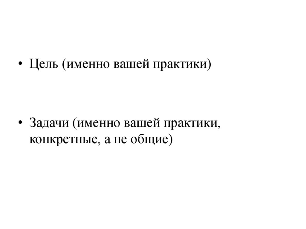 • Цель (именно вашей практики)• Задачи (именно вашей практики,