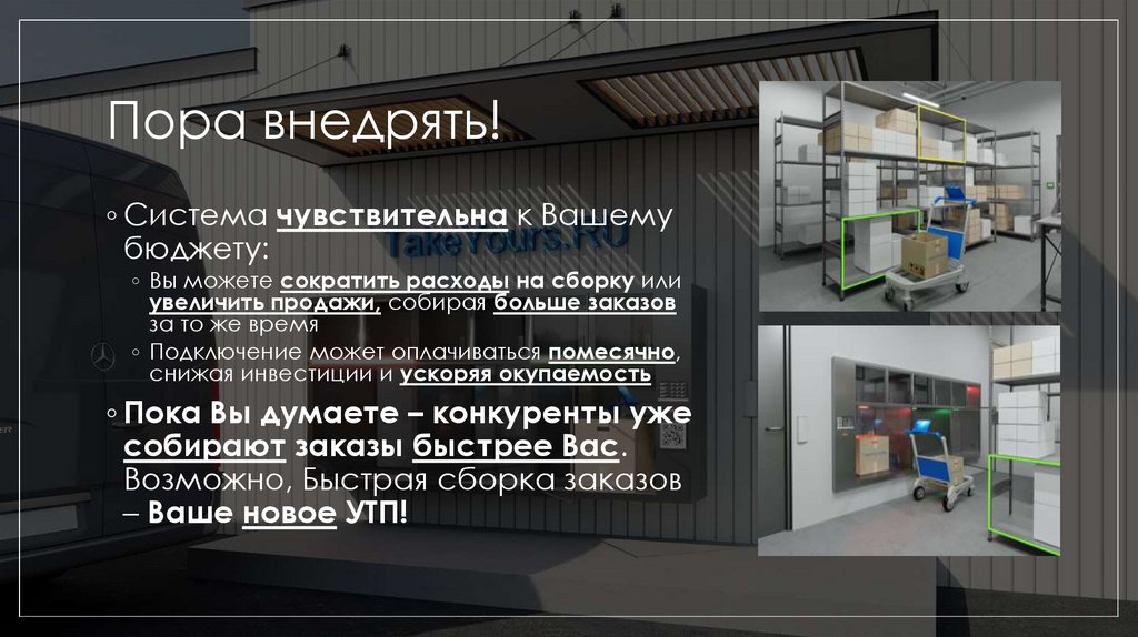 TakeYours Picking◦ Предлагаем внедрить нашу систему TakeYours Picking