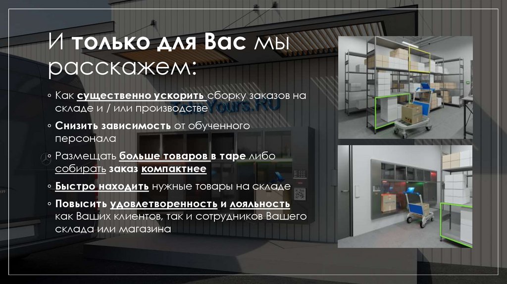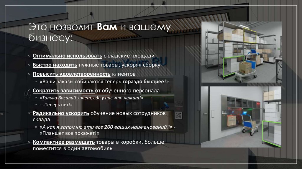 ◦ «Ваши заказы собираются теперь гораздо быстрее!»