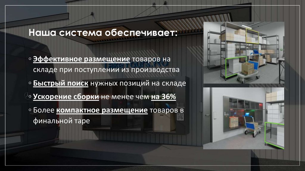 Наша система обеспечивает:◦ Эффективное размещение товаров на