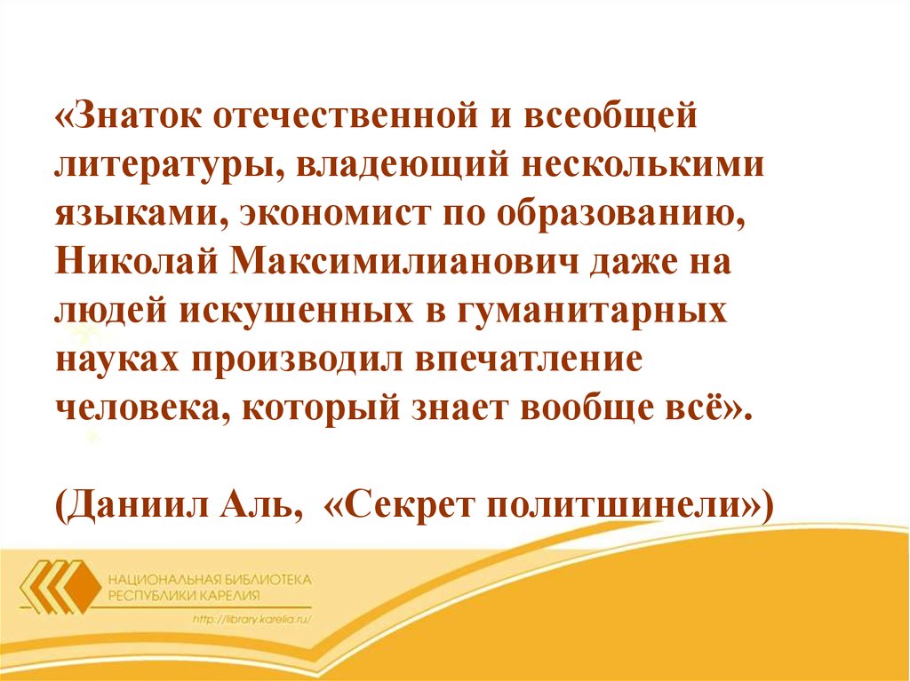 «Знаток отечественной и всеобщейлитературы, владеющий несколькими