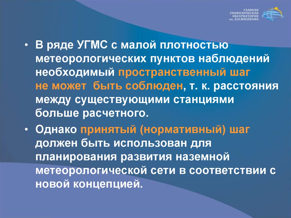 • В ряде УГМС с малой плотностьюметеорологических пунктов наблюдений