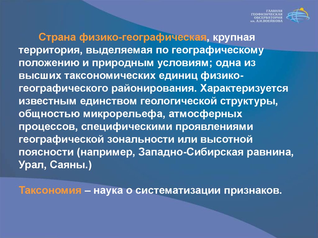 высших таксономических единиц физикогеографического районирования. Характеризуется
