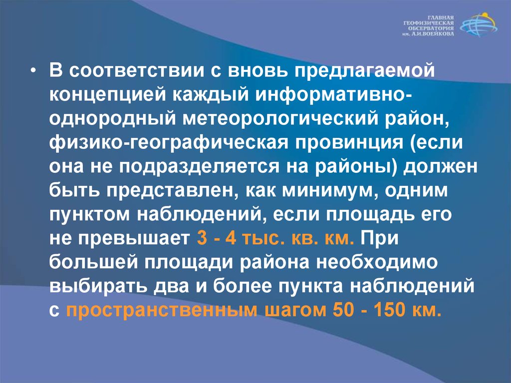 • В соответствии с вновь предлагаемойконцепцией каждый информативнооднородный метеорологический район,