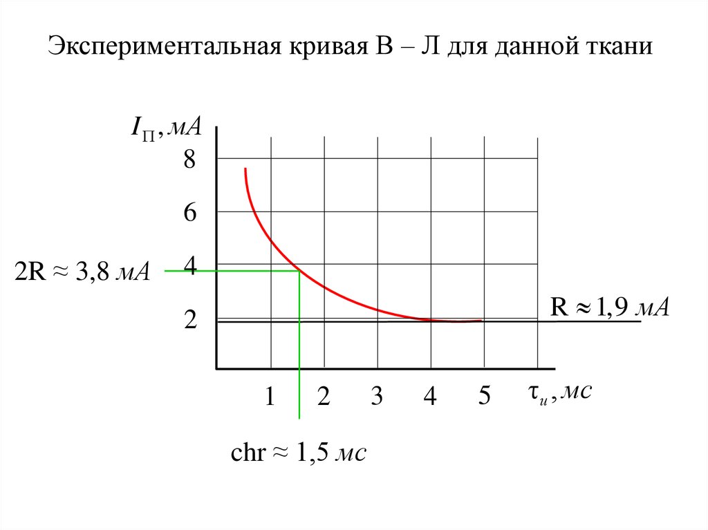 Экспериментальная кривая В – Л для данной тканиI , мА