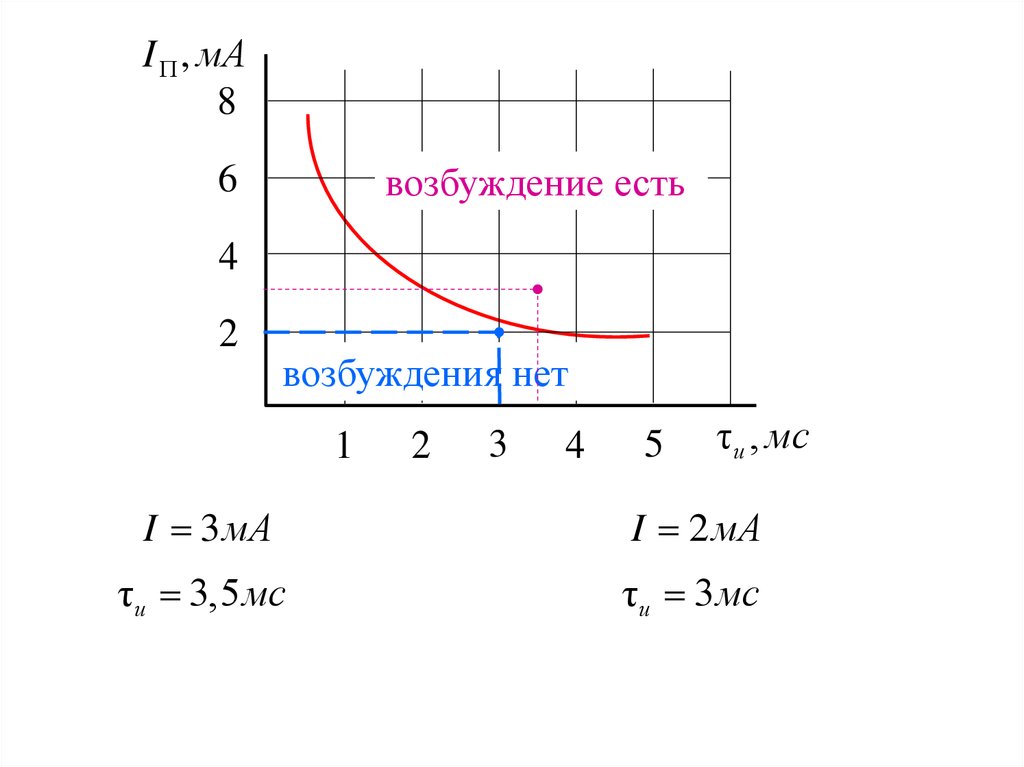 если: I < IП → возбуждения нет