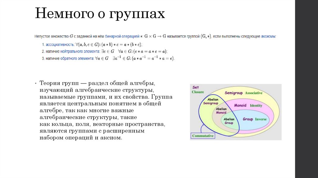 двумя операциями. При этом выполнение аксиом группы очень часто
