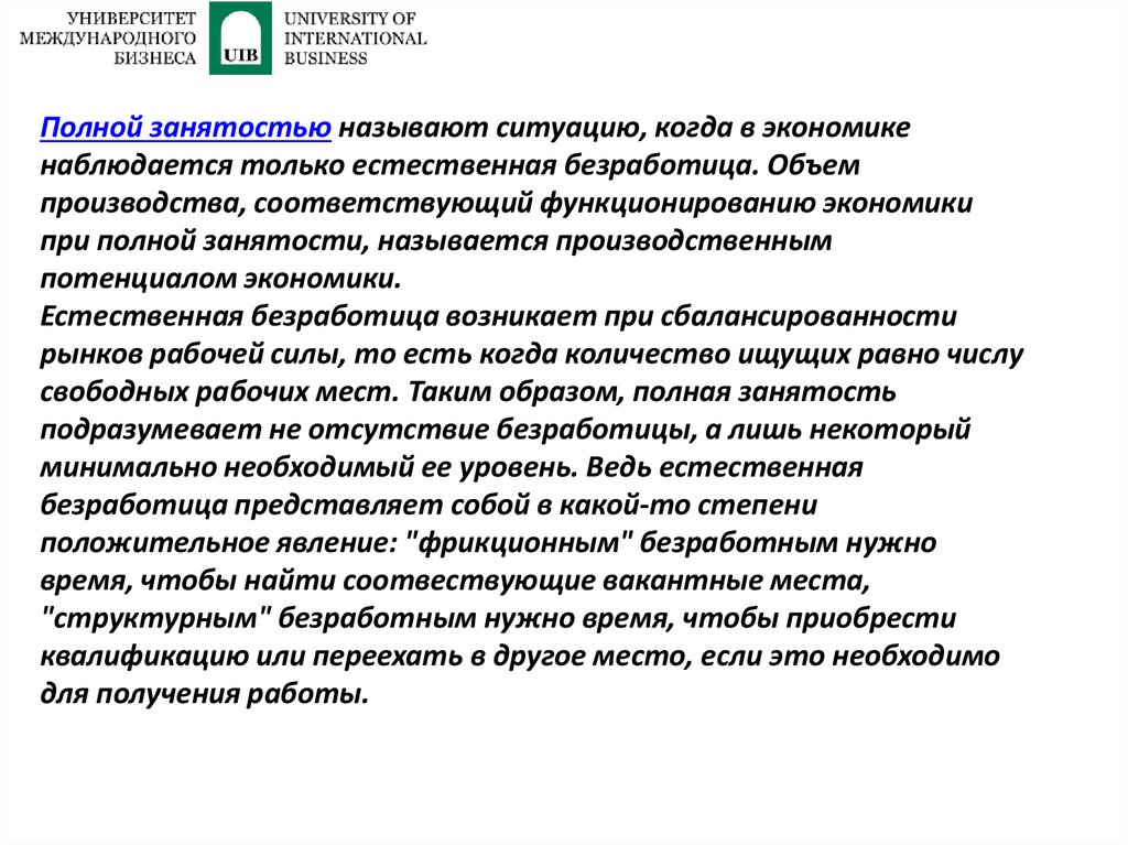 подразумевает не отсутствие безработицы, а лишь некоторый
