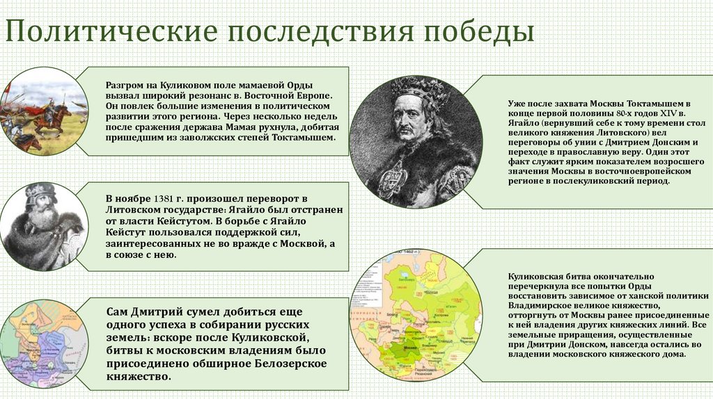 Политические последствия победыРазгром на Куликовом поле мамаевой Орды